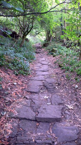 DAY 10 – Twelfth Century footsteps, wild herbs and a castle Wednesday 26th July Reeth to Richmond – 11 miles Breakfast was at 8.00 in the highly decorated but comfortable dining room. Heather may be a creative person but her talents don’t lie in the kitchen. The scrambled eggs were grey but the bread was good and we toasted it ourselves at the table. Mum had mentioned that she used to be a textiles teacher and so after breakfast Heather was keen to show us her workshop in the garden. This is where her real expertise lies – hundreds of hookie rugs, all exquisite, were displayed around the room. She tours all over America demonstrating her skills and must be commended on her use of recycled materials to produce her works of art. We left at 9.30 and bought bread and bananas for lunch at the village post office. We were hoping for a gentle 11 mile stroll to Richmond today. The map suggested a meandering route through farmland and the villages of Grinton, Marrick and Marske. Although a little cooler today it was still very humid and the shade afforded by the woods just past Marrick priory was very welcome. Our path through the aptly named Steps Wood used a paved way known as the ‘Nuns Causeway’ apparently used as a path in the twelfth century for the nuns between the Priory and the village of Marrick. If the nuns had laid the path themselves they must have been pretty strong as some of the slabs were enormous. At the top of the steps we were reacquainted with Tracy, obviously not in Richmond already. She now had 3 guys tagging along – maybe as insurance against getting lost again. Soon after Marrick we opted for a coffee stop at a remote farmhouse at Nun Cote Nook. We paid £7.90 for two coffees a piece of apple pie and a slice of raspberry sponge cake – a bit pricey, but hey – no competition! As the humidity increased Mum found the going a bit tough, on reflection I’m not sure she was drinking enough. Her ladylike sips of water contrasted with my glugging technique. Lunch today was under the shade of a tree beneath the limestone cliffs at Applegarth and from there it was a gentle descent into Richmond. We arrived at 4 p.m. and did some essential shopping in the market square. I downloaded 180 photos from my camera’s memory card onto a CD. It took ages, the computer software Boots is obviously designed for reliability rather than speed. Yesterday Mum had contacted her nephew, Peter, who lived locally, telling him that we would be in Richmond tonight. As we were waiting for the photos to be written to CD who should walk past but Peter and his wife Adele with their 4 year old granddaughter Nicole. We all went for a cuppa in a nearby tea room and chatted until closing time. I think Peter thinks his Aunty Gwen is a bit mad but was suitable impressed with her achievements so far. We said our goodbyes and went to find our digs for the night. This meant a steep descent towards Richmond Castle to The Old Brewery Guesthouse on ‘The Green’. Our main concern being that we may have to climb back up the hill to find somewhere to eat. We were met by Mary and her husband who also run the Coast to Coast Sherpa van business. The Old Brewery is a lovely old building but the décor is a bit dated and our bathroom could have done with some refurbishment. The beds were comfy though and we fell asleep for an hour after our showers. At 8.00 we went in search of food and did indeed have to re-ascend that hill. We ate at ‘29 Frenchgate’ a super little bistro serving imaginatively prepared local produce. I tried a Moroccan style veggie stew and Mum had the herb encrusted Cod, both served with fresh vegetables. The whole meal was excellent and very reasonably priced. Thought for the day: